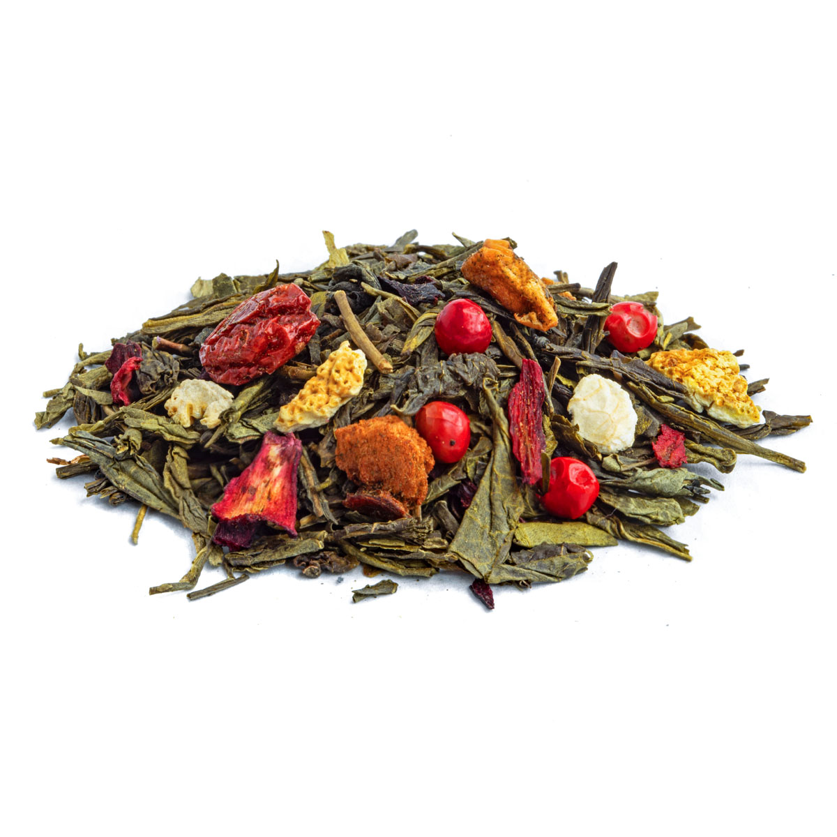 Ingredients: Green Tea China Sencha*, hibiscus*, China White Monkey*, natural pear flavouring, apple*, lemon peels*, pink pepper*, natural green apple flavouring, redcurrant*, natural blackcurrant flavouring, Lime Oil*. * Certified organic