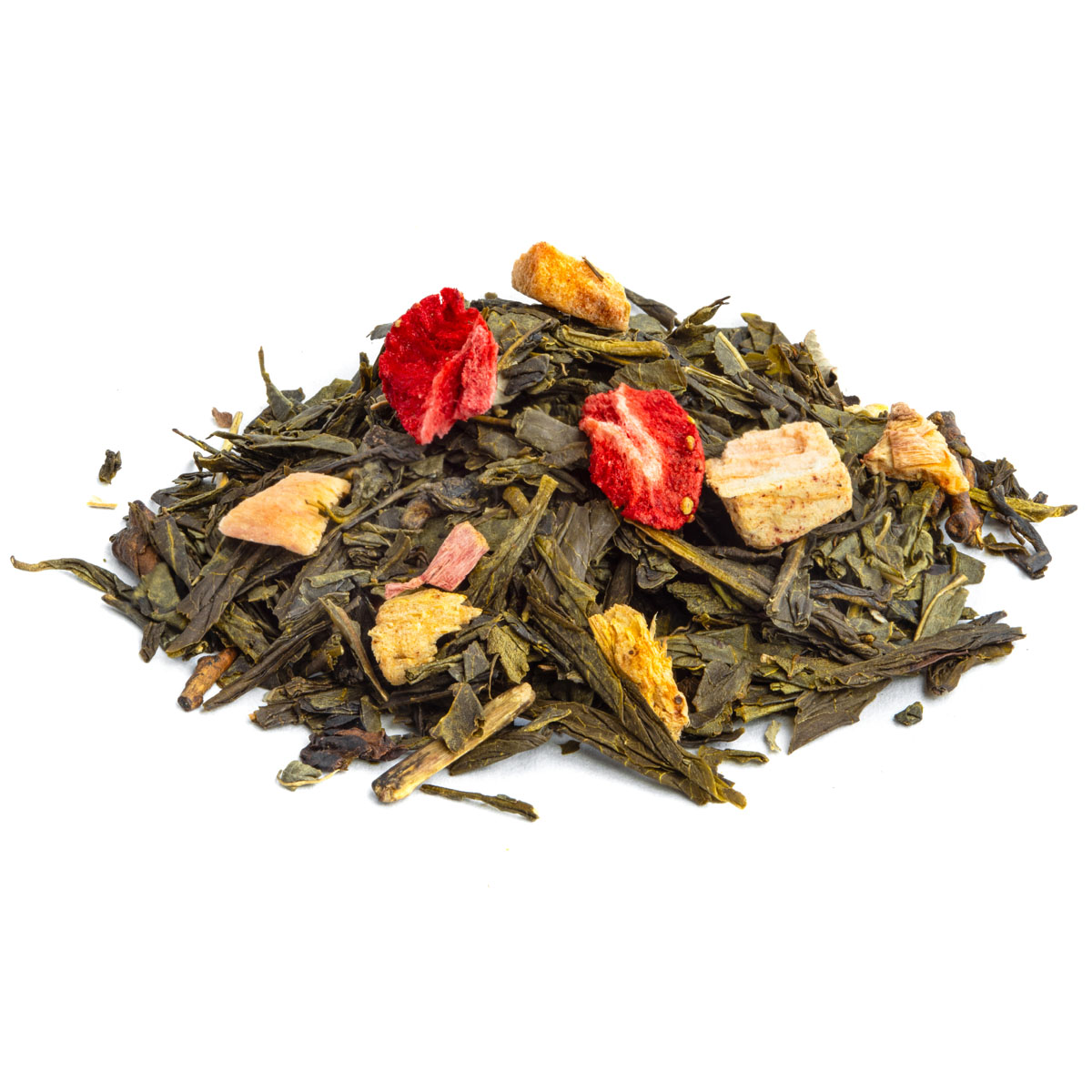 Ingredents: Green Tea China Sencha, flavour, blackberry leaves, strawberry (2%), rhubarb (2%).
