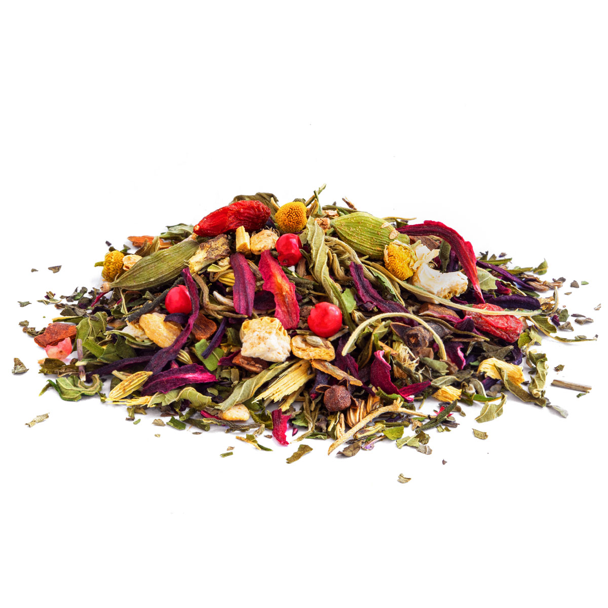Ingredients: Mint* (29%), hemp leaves* (20%), cinnamon sticks* (17%), hibiscus*, licorice root*, fennel* (11%), ginger*, orange peel*, cloves*, chamomile* (3%), pink pepper*, cardamom*. * Certified organic