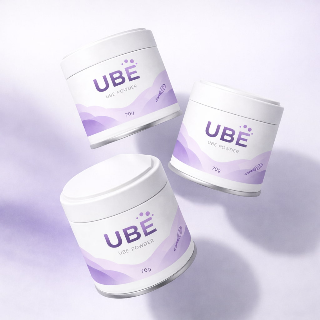 Get 3 free professional visuals of Ube 70 g White Tin, Filled and Customizable from 20 tins ordered.